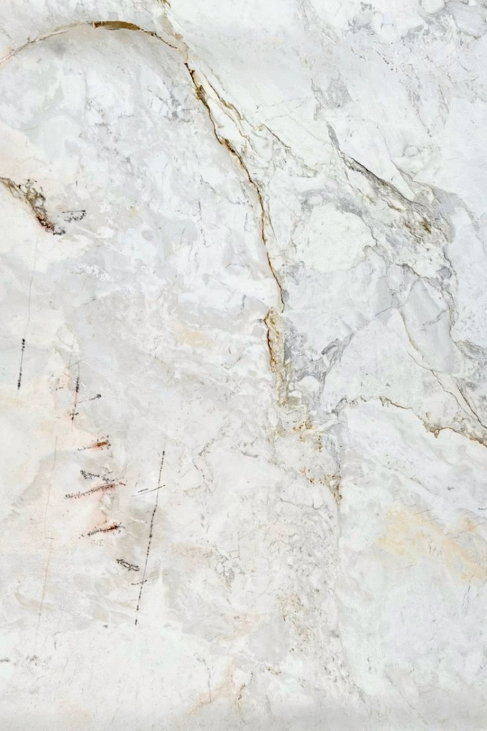- Calacatta Oro: fundo branco com veios dourados e acinzentados, transmite luminosidade e pureza.
